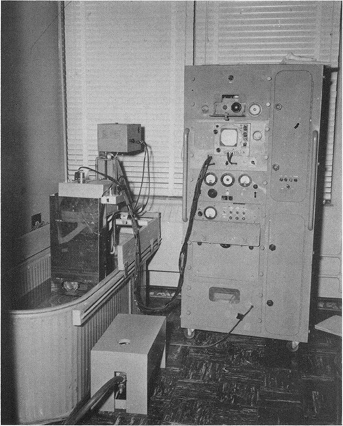 【要旨・解説】医用超音波画像のパイオニア,コロラド大学の放射線科医Douglas Howryと内科医Joseph Holmesのグループの論文である.腫瘍の検出を主眼とするミネソタ大学のWildらと異なり,彼らの目標は解剖学的な断層像の表示にあり,早期からBモードによる断面像を追及して1949年以来ソナーの部品を利用した装置Somascope(ソマスコープ)を試作していた.ここでは切除標本に加えて初めて臨床画像が提示されている.周波数など技術的な詳細は記載されていないが,水浸法によるコンパウンド走査である.装置の外観は,現在からは考えられないほど大がかりである(図5).画像はオシロスコープ画面に表示され,これを直接観察したり,あるいは写真機で撮影する.