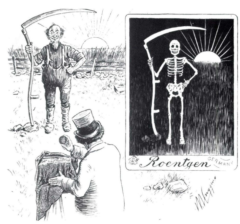 当時,いち早くX線装置の研究に取りかかったトーマス・エジソンのもとには,オペラグラスの枠を送りつけ,これに「X線をとりつけて」返送してくれという依頼が舞い込んだ.X線を至急「1ポンドほど」 送って欲しいという注文もあった[1].新聞,雑誌にはX線をテーマにした漫画が溢れた.X線を使えば,洋服の下が見える,さらには考えていることまで見通せると考えられ,何でも透視できる「X線メガネ」の広告が登場するかと思えば,このような透視からプライバシーを守る「X線防護下着」 が発売された.米国ニュージャージー州の議員は,オペラグラスにX線を使用することを禁ずる法案を提出して,さすがに失笑を買った[2].卑金属にX線を照射して,金に変えることに成功したという者も登場した[3].
