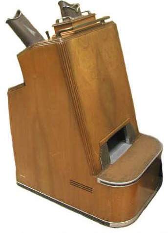図12.「ペドスコープ」.右下の 穴に足を入れて,上部のスコープでX線透視像を観察する[35]