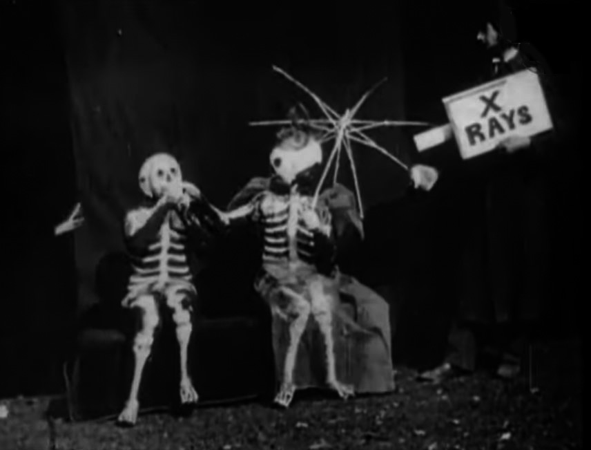 * The X-Ray Fiendとしても知られ,わずか44秒のコメディ短編.もちろん無声で,男性が女性を口説いている場面に,"X RAYS"と書かれたカメラのようなものを持った科学者が登場すると,2人の男女の衣装が骸骨の絵が書かれたボディスーツに変わって骸骨が会話している状態となる.科学者が退場すると再び元の2人に戻り,男は振られて女が去って行く,というただそれだけの内容であるが,女性の持つ日傘も,X線下では骨だけになるなどなかなか良くできている.
