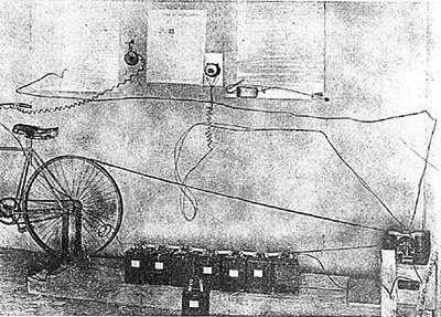 軍医 John C. Battersby少佐指揮下にX線診療が行なわれ,電源は自転車を兵士がこいで車輪につないだ発電機で電池を充電した(図8).また,炎天下でテントの遮光が不十分であったことから,透視,現像は深夜に行なったという.[→原著論文].