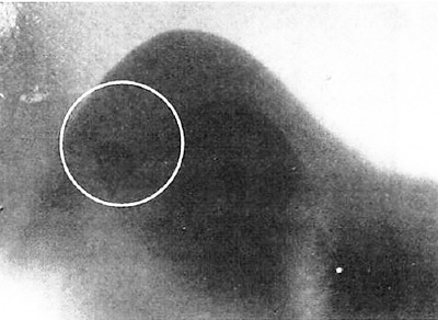 図17.日露戦争の野戦病院で撮影されたX線写真.踵骨下の残留弾[4].