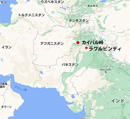 図5.アフガニスタンとインド(現パキスタン)国境のカイバル峠.ラワルピンディから約100kmの距離を人力で資材を運んだ.