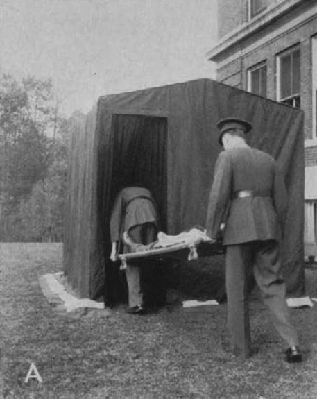 図23.移動外科病院のX線検査室 兼 フィルム現像室となる遮光テント.