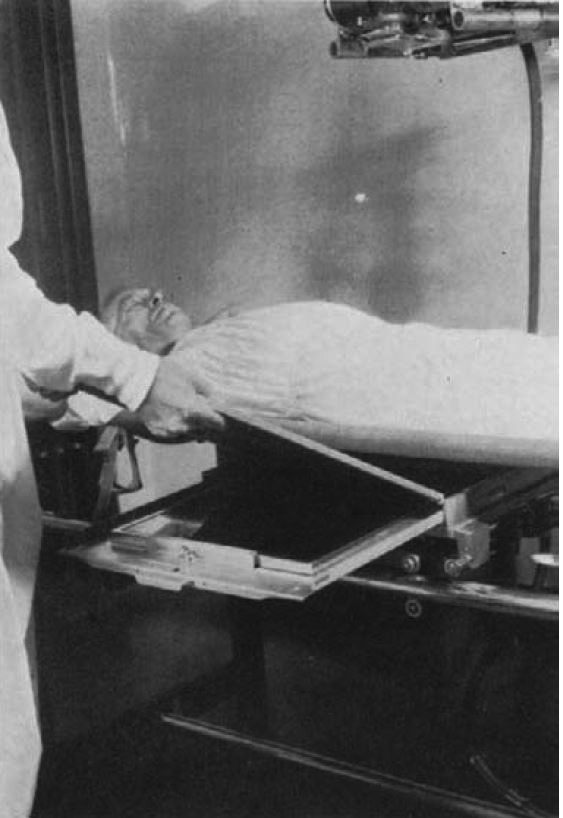 第二次世界大戦では,アメリカ軍は本国における徴兵検査の胸部スクリーニング検査にも,間接X線写真が使用を使用し[→原著論文],戦地でもX線装置が大々的に活躍した.既に放射線科医という専門分野が確立しており,多くの放射線科医が志願したが,それでもやはり絶対数は不足していた.Alfred A. de Lorimer少佐は,他科の臨床医を対象とする促成コースを設けた.当初は28日間であったが,1942年には12週間に延長され,計887名が修了した.このコース修了者の多くは戦後放射線科医となった.また同時に行なわれた放射線技師の養成コースは1429名が修了した[→原著論文].