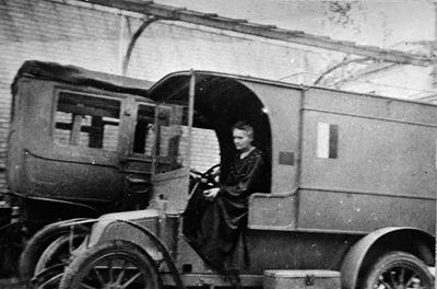 図19.X線装置を搭載したトラック"Petite Curie".運転台に座るのはMarie Curie自身[10].