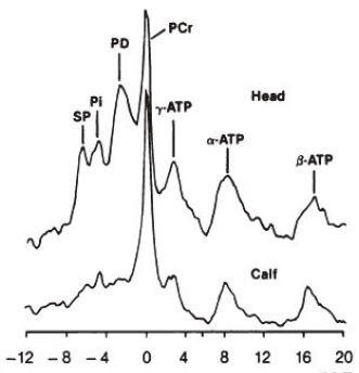 MRイメージングでは,従来言われていたRF浸透性の問題なく,5.1MHz(0.12T)装置に比して11倍のSN比が得られた(図13).初の頭部,体部の in vivoのスペクトロスコピーでは,リン酸化合物,アルキル基などの代謝物質を測定することができ(図15),疾患の診断への有用性を期待できる.