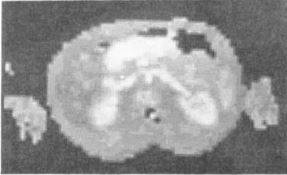 図8. スピンワープ法による腹部横断像.プロトン密度画像.