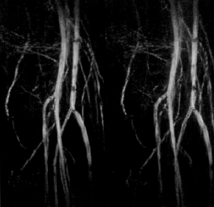 図17.膝窩動脈分岐部のTOF法MRA.最大値投影法(MIP)による表示.