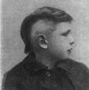 図3. X線による脱毛例(別の論文に掲載されたもの).13歳男児.1896年10月21日,管球-被写体距離18インチ,40分間照射.11月8日に突然脱毛した.疼痛,発赤などはなかった.翌年3月にはほぼ完治した[12].