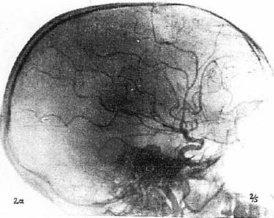 図3. トロトラストによる脳血管造影(前頭葉腫瘍例).それまでのヨード製剤と異なり血管痛がなく,コントラストも良好であった[3]
