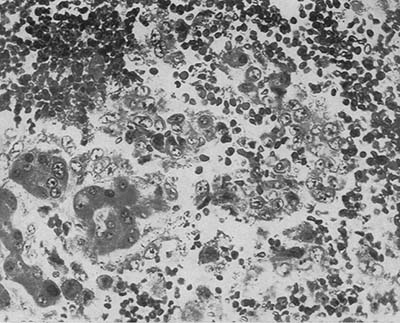 図7. 血液細胞に混じって腫瘍細胞巣が認められる.