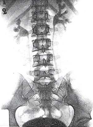 【解説】著者のOsborneは皮膚科医で,梅毒の専門医であった.当時,梅毒の治療法としてヨウ化ナトリウム(NaI)の大量投与が行なわれており,この患者にX線撮影を行なうことにより,その排泄性尿路造影剤としての応用を検討した論文である.膀胱は全例において明瞭に描出されたもの,腎盂,尿管は確実とはいえず,腎実質の造影効果はごく淡いものにとどまった.従来の逆行性腎盂造影に比較すればまだ不十分とはいえ,カテーテルを挿入せずに非侵襲的に尿路造影が得られたことは画期的なことであった.
